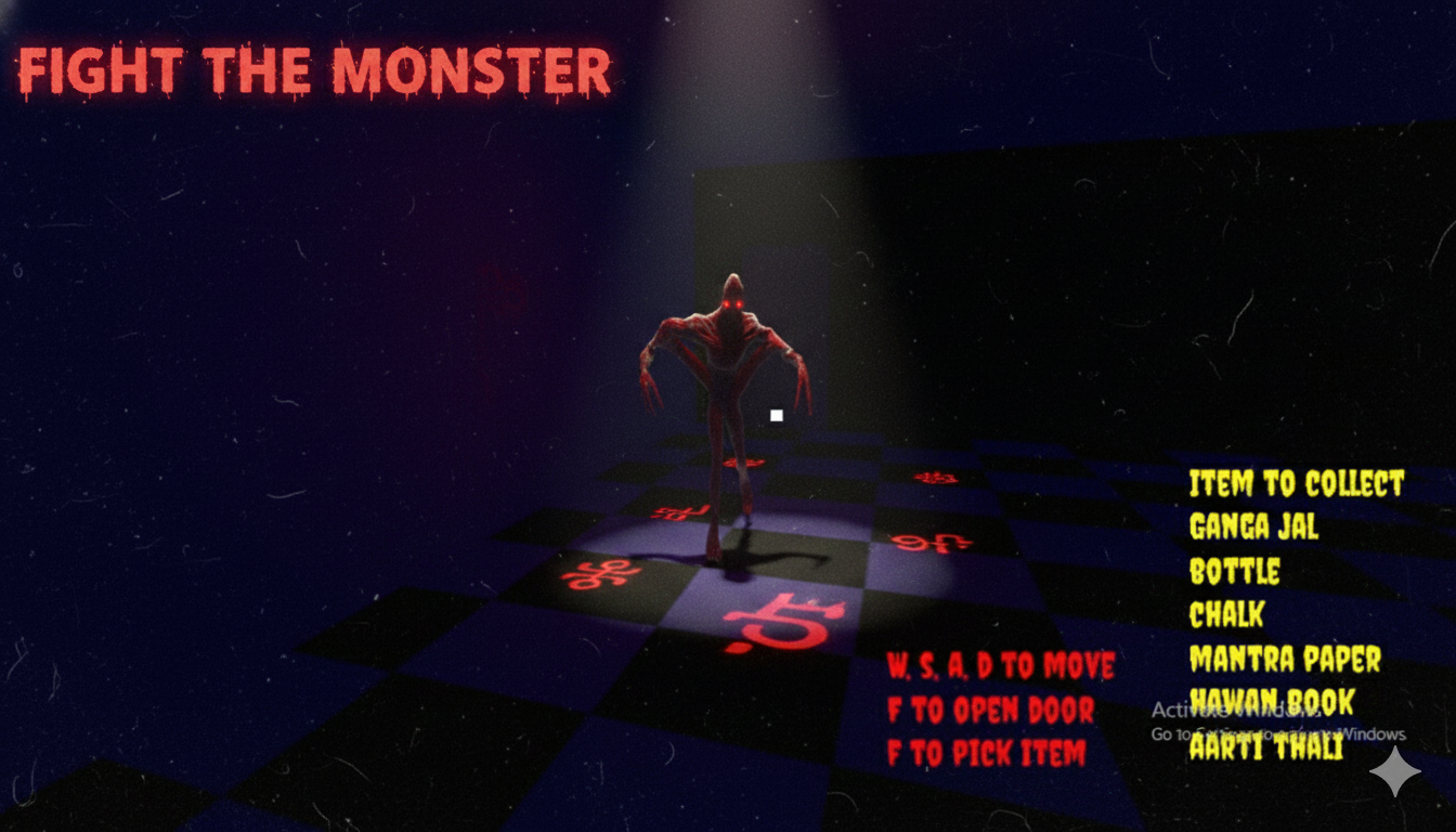 - The Hunt for Holy Items: Scour the dark rooms for sacred artifacts—Ganga jal, Mantras, and holy scripts. Only by collecting them all can you banish the beast.